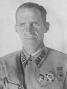 Boris Mikhailovich Skvortsov (Russian: Борис Михайлович Скворцов; 10 July 1902 – 12 May 1946) was a Red Army major general of tank forces who rose to command the 5th Guards Mechanized Corps during World War II.
