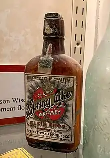 Bottled in bond (BIB) is a label for an American-produced distilled beverage that has been aged and bottled according to a set of legal regulations contained in the United States government's Standards of Identity for Distilled Spirits,[1] as originally specified in the Bottled-in-Bond Act of 1897.[2][3] As a reaction to widespread adulteration of American whiskey, the act made the federal government the guarantor of a spirit's authenticity, gave producers a tax incentive for participating and helped ensure proper accounting and the collection of tax that was due. Although the regulations apply to all spirits, most bonded spirits are whiskeys in practice.
