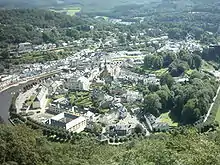 The town sits in a sharp bend of the river Semois (German: Sesbach, Walloon: Simwès, in France : Semoy) whose total length is 210 km. The surrounding area is largely forested.