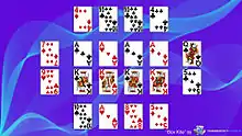 Box Kite is a moderately difficult patience or card solitaire using two packs.[1] The object of the game is to move all of the cards to the foundations. It is a variant of the old game of St. Helena.