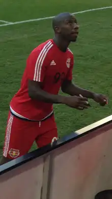 On 1 March 2018, Wright-Phillips opened the scoring for New York in a 2–0 victory over Olimpia in the CONCACAF Champions League.[57] With the victory New York advanced to the Champions League Quarterfinals for the second time in club history. On 6 March he scored two goals to lead New York to a 2–0 victory in Mexico over Club Tijuana in the CONCACAF Champions League.[58] On 10 March 2018, he scored his first league goal in a 4–0 victory over Portland Timbers.[59] On 13 March 2018, Wright-Phillips assisted on all of New York's goals in a 3–1 victory over Club Tijuana in the CONCACAF Champions League, helping the club advance to semifinals of the Champions League for the first time.[60] On 5 May 2018, Wright-Phillips added to his tally of goals against New York City FC, scoring his club's second goal in a 4–0 victory.[61] On 25 July 2018, Wright-Phillips scored his 100th MLS goal in a 1–0 victory over D.C. United, surpassing Taylor Twellman as the fastest player in MLS history to score 100 goals.[62][63] On 5 August, New York Red Bulls retired his No 99 jersey and announced that they will never issue it to another player after he retires.[64]