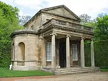 The Open Temple was probably constructed in the early 18th century in Magnesian limestone ashlar and was built in a classical style as a single cell with a pedimented 3-bay facade.[14]
