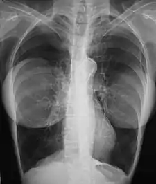 Chest X-ray showing breast implants