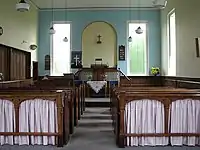 In the early days of Methodism chapels were sometimes built octagonal, largely to avoid conflict with the established Church of England. The first was in Norwich (1757); it was followed by Rotherham (1761), Whitby (1762), Yarm (1763), Heptonstall (1764) and nine others. John Wesley personally approved the design of the octagonal chapels, stating, "It is better for the voice and on many accounts more commodious than any other." He is also said to have added—"there are no corners for the devil to hide in".[83]