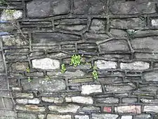 Ivy-leaved toadflax (Cymbalaria muralis), with Wall-rue (Asplenium ruta-muraria) also present