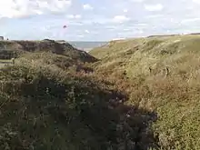 The Isle of Wight Coastal Path crosses the chine via the road bridge on the A3055 bridge.