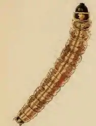 The larvae feed on various mosses. They feed from within a silken gallery.[5] They have a dull purplish brown body.