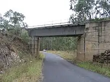 The dilapidated timber sections of Kirks Bridge, crossing Baerami Creek at Baerami were demolished and were planned to be replaced with new concrete sections by 31 August 2007.[16] Unfortunately, flooding during the 2007 New South Wales storms delayed the work by around a month. The bridge had previously been partially rebuilt, with both buttresses and two spans at one end having been reconstructed in concrete.[17]