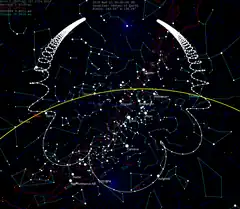 ![]() Comet's trajectory through the Solar System, with 30-day motion markers | |