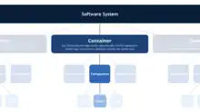 - Component diagrams (level 3): decompose containers into interrelated components, and relate the components to other containers or other systems;