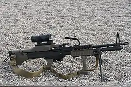In Dutch service it is used on the Diemaco C7 (regular infantry), C7A1 (airmobile infantry) and C8, FN Minimi and FN MAG series of firearms.