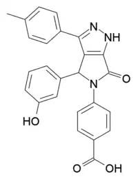 • Cc5ccc(c3n[nH]c4C(=O)N(c1ccc(C(=O)O)cc1)C(c2cccc(O)c2)c34)cc5