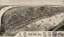The first municipal charter for Cairo and for the Bank of Cairo were issued in 1818, but without any settlement and without any depositors.[6] A second and successful effort to establish a town was made by the Cairo City and Canal Company in 1836–37, with a large levee built to encircle the site.[6] However, this effort collapsed in 1840, with few settlers remaining.[6]
