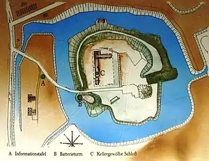 Plan of the fortress on the information board at the entrance to the Calenberg.