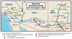The California Column was a force of Union volunteers sent to Arizona and New Mexico during the American Civil War. The command marched over 900 miles (1,400 km) from California through Arizona and New Mexico Territory to the Rio Grande and as far east as El Paso, Texas, between April and August 1862.