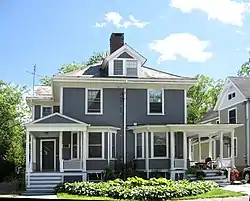 The house was built in 1900-01 by J.W. O'Brian, and its left side was rented in 1905 by Calvin Coolidge. The Coolidges occupied that unit until 1930. This period of occupancy coincides with Coolidge's political rise from city council to Governor of Massachusetts, then Vice President and President.[3] In 1930, Coolidge moved to "The Beeches" at 16 Hampton Terrace in Northampton,[4] a move he said was necessitated by the increasing number of tourists coming to this address and the attendant lack of privacy. This property is one of the most unusual of those occupied by a US president on a long-term basis, in that he did not own it, and that it was a duplex.[2]