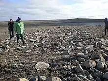 The first known people to occupy the area were the Pre-Dorset people, somewhere around 1800 BCE, about 4,000 years ago, and were seal and caribou hunters.[16] The next group to enter the area were a Paleo-Eskimo peoples known as the Dorset, who arrived approximately 500 CE. They were the first known people to have fished for the Arctic char.[17] The last of the Paleo-Eskimo people, who appeared here about 800 CE, were the Tuniit, and evidence of their living quarters can be seen close to Cambridge Bay. The Tuniit, who were known to the Inuit as giants, were taller and stronger than the Inuit, but were easily scared off.[18][19]