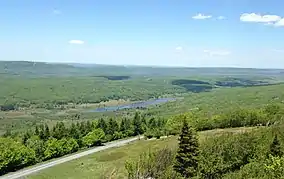 Canaan Valley (locally /kəˈneɪn/) is a large bathtub-shaped upland valley in northeastern Tucker County, West Virginia, USA. Within it are extensive wetlands and the headwaters of the Blackwater River which spills out of the valley at Blackwater Falls. It is a well-known and partially undeveloped scenic attraction and tourist draw. Since 1994, almost 70% of the Valley has become the Canaan Valley National Wildlife Refuge, the nation's 500th National Wildlife Refuge,[1] with Canaan Valley Resort State Park and Blackwater Falls State Park nearby.