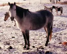 The Canadian Rustic Pony was developed by Dr. Peter Neufeld of Manitoba, Canada.[1] Breeders developed the breed by crossing Heck horses from the Atlanta Zoo in Atlanta, Georgia with Arabian horse-Welsh pony crosses. On January 23, 1989, the Canadian Rustic Pony Association was formed, incorporated under the new Canadian federal Animal Pedigree Act, also known as Bill C-67. Prior to this, since 1978, Canadian rustic ponies had been registered through a registry based in the United States, and as of September 1989, 72 ponies had been US-registered. These ponies were eligible to become double-registered under the Canadian and US registries, and many did so. No ponies were found outside of Manitoba and Saskatchewan as of September 1989, but this was expected to change as more breeders became aware of the new breed.[2]