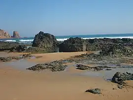 The headland contains remnant vegetation and wildlife such as an important breeding colony of the short-tailed shearwater, also called the Australian muttonbird.[9] Volunteer groups such as the Cape Woolamai Coast Action Group conduct regular improvement and maintenance works including weed control and revegetation.[10][11] It lies within the Phillip Island Important Bird Area, identified as such by BirdLife International because of its importance in supporting significant populations of little penguins, short-tailed shearwaters and Pacific gulls.[12][13]