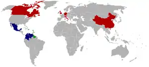 Caribbean Development Bank was established by an agreement between sixteen Commonwealth of Nations members from the Caribbean region, Canada and the United Kingdom signed on October 18, 1969, in Kingston, Jamaica.[2] Agreement entered into force on January 26, 1970 until when 15 out of 18 signing states ratified it.[2] Bank's initial capital was 50 million US dollars corresponding to the value of 100 million Eastern Caribbean dollar with three main contributors being Jamaica with 11,200,000 US dollars and 19.52% of votes, and United Kingdom and Canada both with 10,000,000 US dollars and each with 17.55% of votes in bank.[2] Arthur Lewis was chosen as the first bank's president on the meeting of banks governors in Nassau.[2]