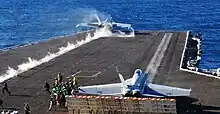 {{cite web}}: CS1 maint: numeric names: authors list (link) and MCS 3/c Heather Roe (14 February 2013). "USS Carl Vinson, CVW-17 Earn Carrier Qualifications". NNS120905-08. USS Carl Vinson Public Affairs. Retrieved 21 February 2013.{{cite web}}: CS1 maint: numeric names: authors list (link) - ↑ "2013 History". USS Carl Vinson CVN-70. USCarrier.net. 22 September 2011. Retrieved 12 December 2013.