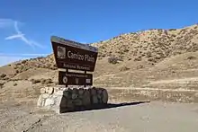While the Carrizo Plain is dotted with dry holes drilled and abandoned by oil companies in decades past, no commercially viable quantities of petroleum have ever been found on the plain itself. Small quantities of drillable oil have been found south of the Caliente Range, near the Russell Ranch Oil Field, and in the northeast part of the Temblors, abutting the giant McKittrick and Cymric fields.[23] As the plain is adjacent to the super-giant oil fields of Kern County – the Midway-Sunset Oil Field, third largest in the United States, is on the other side of the Temblor Range – the Carrizo Plain has long been considered to have at least a moderate potential for oil development.[24] As it is separated from the major oil fields by the San Andreas Fault, and the underlying source rock, the Monterey Formation appears not to have been buried at the right conditions of temperature and pressure, and as the stratigraphy has not favored petroleum entrapment, accumulations of oil in economically recoverable quantities have not been found. Vintage Production, a subsidiary of Occidental Petroleum, owned the mineral rights to 30,000 of the monument's 250,000 acres (101,000 ha). When oil prices spiked in 2007, Vintage notified the U.S. Bureau of Land Management (BLM) of its intentions to find out if oil is contained in the Carrizo Plain. The mineral rights owned by Vintage pre-exist the monument's creation by President Bill Clinton in 2001.[25] The BLM approved an oil well and pipeline project in the Russell Ranch Oil Field within the monument in 2018, but withdrew it after Los Padres ForestWatch and the Center for Biological Diversity filed objections citing the potential for oil spills, air pollution and harm to wildlife, among other environmental concerns. The BLM approved the project in 2020 after their analysis showed that the new well posed no undue health or safety concerns, had no significant impacts to the environment and was consistent with management directives for the monument.[26] An agreement was reached in 2022 over a lawsuit against the BLM filed by the conservation groups in 2020.[27] The BLM issued an order to E&B Natural Resources to permanently close and remove 11 long-dormant oil wells, return the oil pads and more than 3 miles (4.8 km) of access roads to natural conditions, as well as removing pipelines, powerlines and other infrastructure from within the monument.[28]