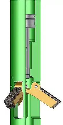 A Casing-cutter is a device used in petroleum industry to cut a complete section of a casing, a liner or all others tubular components in a well bore. This cutting tool is composed by several cutting blades (reinforced with Tungsten carbide) pivotally mounted on support body. During cutting operations, the cutting blades are gradually deployed outside the support body by hydraulic pressure or mechanical action