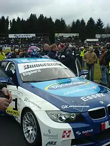 Elgaard in a BMW 320si waiting to start in the Danish Touring Car Championship.