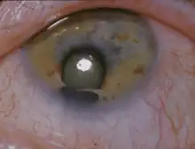 Cat-eye syndrome (CES) or Schmid–Fraccaro syndrome is a rare condition caused by an abnormal extra chromosome, i.e. a small supernumerary marker chromosome.[2] This chromosome consists of the entire short arm and a small section of the long arm of chromosome 22. In consequence, individuals with the cat-eye syndrome have three (trisomic) or four (tetrasomic) copies of the genetic material contained in the abnormal chromosome instead of the normal two copies.[3] The prognosis for patients with CES varies depending on the severity of the condition and their associated signs and symptoms, especially when heart or kidney abnormalities are seen.[4]