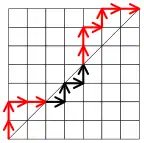 • Starting from the bottom left, follow the path until it first travels above the diagonal.