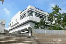 The New Asia College Library was first founded as part of the New Asia College on Farm Road, Kowloon in 1954.[1] As the New Asia College became one of the constituent colleges of the CUHK, the library was also moved into the Ma Liu Shui campus in 1973 and named "Jing Ye Guan" afterwards.[2] In 1975, it was renamed after Prof. Ch'ien Mu, the founder of the New Asia College.[3] The bust of Mr. Ch’ien Mu, sculpted by Prof. Wu Wei-shan who was director of the Academy of Fine Art of Nanking University, was placed in the lobby of the Ch’ien Mu Library in 2004.[4] The design of the elevated mezzanine in the building is modelled after the library of Berea College in Kentucky, U.S.A.