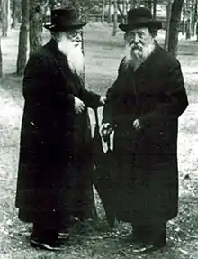 ![]() Rabbi Chaim Ozer Grodzinski (right) conversing with Rabbi Shimon Shkop | |
