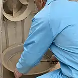 Chaoqi originated in Yuanqu County, Shanxi province, China over 4,000 years ago. Due to the lack of modern transportation back then, journeys were long. They may feel nostalgic and unaccustomed to the climate outside of their hometown. As a result, they will bring Chaoqi with them because the dough is produced by the water, flour and soil from their hometown.[1] Chaoqi gets easily spoiled and needs a preservative. To save the dough better, it is covered with an outer layer of Guanyin Clay (A.K.A Kaolinite).[2] Chaoqi was listed as an intangible cultural heritage of Shanxi Province on April 24, 2009.[3]