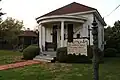 It was built in 1912 in a Colonial Revival style by J.W. Heartfield. The plan is nearly square, 20' x 24', with clapboard siding and corner beads. There is a hipped roof that is now asphalt, but was once shingled in cedar. The front elevation exhibits a semi-circular portico supported by two Doric columns capped with oversized capitals and two pilasters.