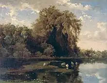 An 1875 painting, Ahuehuetes en Chapultepec, by José María Velasco Gómez depicting the ahuehuetes by the lake in Chapultepec. It is possible this is a view from Chapultepec Castle.[8]