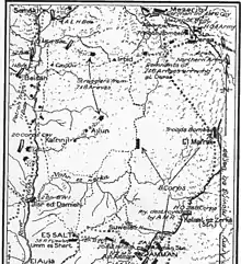 Three quarters of Feisal's 4,000 strong force including Nuri esh Shalaan's camel force, were irregulars.[8] As remnants of the Ottoman Fourth Army retreated northward via Deraa towards Damascus they were pursued by Arab forces.[9][10]