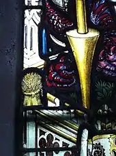 Kempe's maker's mark, the wheatsheaf, on a window in St Mary's Church, Nottingham