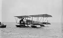 In March 1915 Samson was sent to the Dardanelles with No 3 Squadron (later No 3 Wing); it was based on the island of Tenedos and, together with seaplanes from HMS Ark Royal, initially provided the only Allied air cover.[8] On arrival, it was found that out of 30 aircraft that had been sent in crates, only 5 were serviceable (B.E.2s and a Nieuport 10).[9] His squadron pioneered the use of radio in directing the fire of battleships and photo-reconnaissance.[10] Samson flew many missions himself and on 25 April at the Landing at Cape Helles, he reported that "the sea was absolutely red with blood to 50 yards out" at Sed-el-Barr ("V Beach").[11] On 27 May, Samson attacked the German submarine U-21, which had just sunk HMS Majestic; when he ran out of bombs he resorted to firing his rifle at it.[12] In June, a temporary airstrip was constructed at Cape Helles; Samson became well known for waving cheerily to the Allied troops in the trenches below.[13] On one occasion, he bombed a Turkish staff car but only succeeded in breaking the windscreen; one of the occupants was Mustafa Kemal, the charismatic Turkish commander and later founder of the Turkish Republic.[14] In August, Samson's wing was moved to a new airfield at Imbros where it was joined by No 2 Wing under the overall command of Colonel Frederick Sykes.[15] who had been given the naval rank of Wing Captain with three years' seniority. Sykes had previously written a critical report of the Gallipoli air operations, which had caused Samson to lobby against Sykes; however, Samson loyally served under Sykes until he was recalled to London in November.[16]