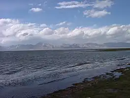 Chatyr-Köl (Kyrgyz: Чатыр-Көл, Russian: Чатыр-Куль, romanized: Chatyr-Kul') is an endorheic alpine lake in the Tian Shan mountains in At-Bashy District of Naryn Province, Kyrgyzstan; it lies in the lower part of Chatyr-Köl Depression near the Torugart Pass border crossing into China. The name of the lake means “Celestial Lake” in Kyrgyz (literally "Roof Lake").