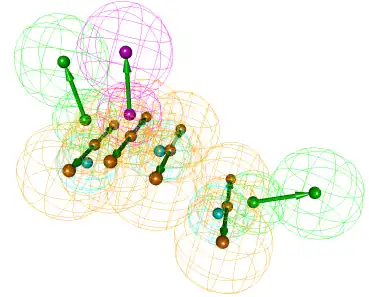 An example pharmacophore model. Each sphere represents a different scorable feature.