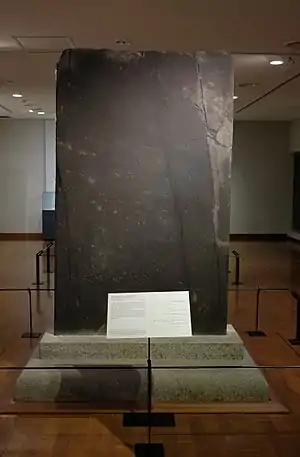 King Taejo ordered royal astronomers to carve the constellations on a flat black stone in December, 1395. The stone is about 122.5 cm in width, 211 cm in height, and 12 cm in depth. The engraved stone shows the 1,467 stars visible from Korea,[1] 264 constellations and their names, the ecliptic and equatorial lines, and 365 scales around. It was compiled through a combination of a Goguryeo star map with more recent observations.
