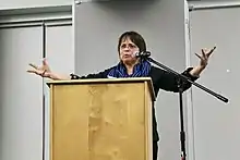 Moraga speaking in 2000