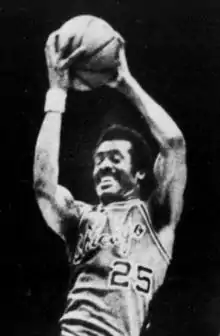 Walker was drafted by the Syracuse Nationals in the 1962 NBA draft, and was named to the NBA's first All-Rookie Team in 1963. He followed the team to Philadelphia after his rookie season. A seven-time participant in the NBA All-Star Game, Walker averaged over 19 points and eight rebounds a game for the 1966–67 76ers, who won 68 games and lost just 13—the best record in NBA history at the time. That Alex Hannum-coached team, which also featured center Wilt Chamberlain, guards Hal Greer and Wali Jones, and sixth man Billy Cunningham, ended the eight-year championship run of the Boston Celtics. Walker played his final six seasons with the Chicago Bulls, and never averaged less than 19.2 points and 5.0 rebounds a game. In his 13-year career, Walker scored a total of 18,831 points. The 6–6 forward was an outstanding free-throw shooter, especially in his later years with the Bulls. He led the NBA with an accuracy rate of 85.9 percent in 1970–71, and ranked among the top-10 free-throwers five other times. On February 6, 1972, Walker scored a career-high and then team-record 56 points during a Bulls win over the Cincinnati Royals.[3]