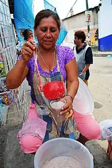 Chilate is a drink prepared with cocoa, rice, cinnamon and sugar. It is originally from Ayutla de los Libres, Guerrero, México. Chilate is served cold and usually accompanied with buñuelos.