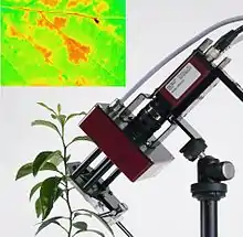 Chlorophyll fluorescence can measure most types of plant stress. Chlorophyll fluorescence can be used as a proxy of plant stress because environmental stresses, e.g. extremes of temperature, light and water availability, can reduce the ability of a plant to metabolise normally. This can mean an imbalance between the absorption of light energy by chlorophyll and the use of energy in photosynthesis.[11]