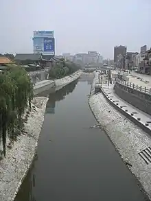 In a daylong trip, the party reached the next station located 35 km (22 mi) north by the second watch of the night.[14] Heavy rains and wind made further advance impossible, but despite rain on the next day, Zhai Yong urged Choe and the Koreans to push on regardless, explaining that the regulations for prompt arrival times in China's courier system were very stringent.[14] The party covered another 35 km (22 mi) on 11 March, completely soaked by the rain when they reached the next station.[14] The station master provided the party with a small fire to keep warm, but a man who thought the Koreans were captured pirates barged in and kicked their fire out in a rage.[14] Zhai Yong dutifully wrote an account of this assault and passed it on to the county magistrate's office before having the party continue en route to their destination on the following day, 12 March.[14] They reached the Beidu River on that day, boarding ships that would lead them to the Grand Canal, the central courier and trade artery of China that would carry them all the way to Beijing.[16] At this point, water transport was the preferable means of travel for the courier agents; Choe wrote "all envoys, tribute, and commerce come and go by water. If either the water in the locks and rivers is too shallow because of drought to let boats pass or there is a very urgent matter, the overland route is taken."[17] When the party reached Ningbo on that day, Choe Bu remarked on the beautiful scenery; when they reached Cixi City, he noted the city's many markets and cluttering of warships; upon entering Ningbo and reaching the Supreme Piracy-Defense Office, Choe wrote that the gates and crowds there were three times as great as at Cixi.[17]