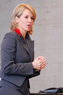 In 2001 she returned to SRF 1 as an announcer of the talkshow Zischtigsclub . In 2005, she filled in for Daniela Lager during her half-year maternity leave[1] on the current affairs show 10vor10. After the departure of longtime Club host Ueli Heiniger in 2006, she took over its editorial management, and in November 2011 she presented her last show for the Club. In early August 2011, she took over at "10vor10" as the successor of Susanne Wille.[2] On 4 October 2013 she presented the news for the last time at Schweizer Radio und Fernsehen.[3] Since 1 November 2013 she has been the editor-in-chief of SonntagsBlick.[4]