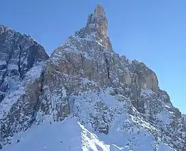 Cimon della Pala, sometimes called Cimone[1] and The Matterhorn of the Dolomites (il Cervino delle Dolomiti),[2][3] is the best-known peak of the Pale di San Martino group, in the Dolomites, northern Italy. Although it is not the highest peak of the group, the Cima Vezzana being a few metres higher, its slender point, which can be seen from the Rolle Pass, dominates the landscape.[4]