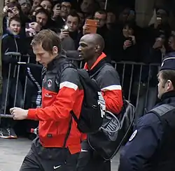 Chantôme and Zoumana Camara leaving their hotel before a match for Paris Saint-Germain.